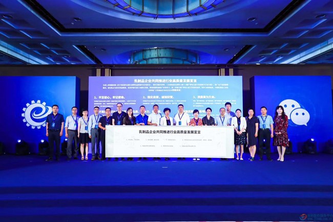 2019年7月2日,由中國乳制品工業協會會同廣大乳制品企業共同起草的《乳制品企業共同推進行業高質量發展宣言》,在2019年全國食品安全宣傳周工業和信息化部主題日期間正式對外發布。中國乳制品工業協會以及伊利、蒙牛、光明、君樂寶、飛鶴、完達山、三元、銀橋、明一、百躍、圣元、貝因美、燕塘、得益、龍丹、菲仕蘭、美贊臣、雀巢等18家乳制品和嬰幼兒配方乳粉生產企業相關負責人出席了發布儀式。